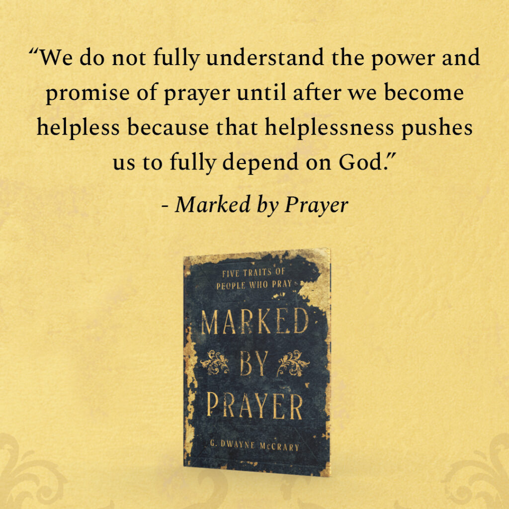 Some people are marked by prayer. They enter a room with no fanfare, yet you know they are there. They are the people we turn to for wisdom and a listening ear, knowing they carry the marks of prayer. What does it take to become one of these people? Author G. Dwayne McCrary takes us on a journey to identify five traits and gain a deeper understanding of each. Discover how these traits developed in the lives of biblical characters, giving us clues as to how these same marks can be fostered in our own lives. Along the way, the reader’s understanding of prayer moves from a to-do list for God to a response to His character.