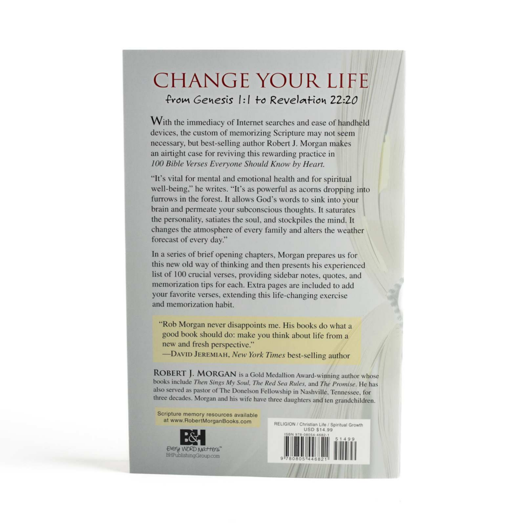 With the immediacy of Internet searches and ease of handheld devices, the custom of memorizing Scripture may not seem necessary, but best-selling author Robert J. Morgan makes an airtight case for reviving this rewarding practice in 100 Bible Verses Everyone Should Know by Heart.