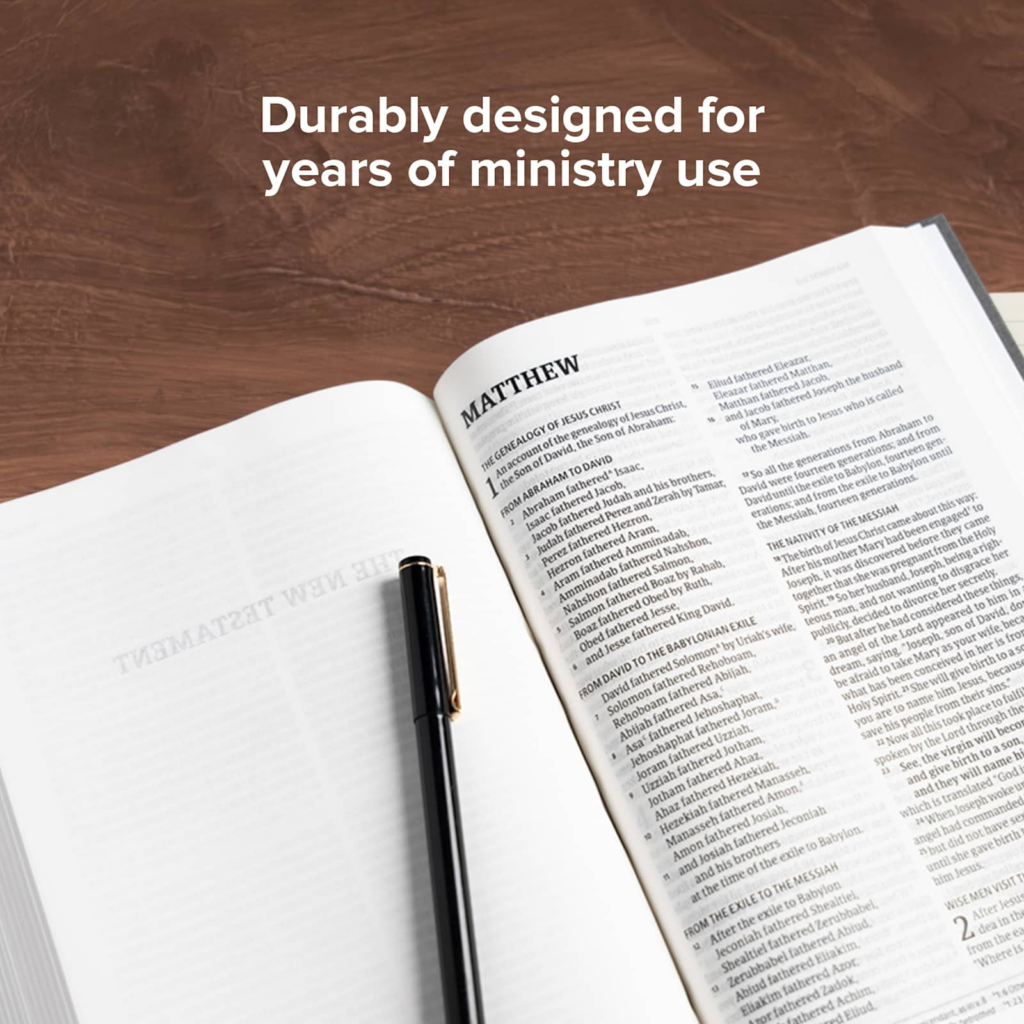 The CSB Church Bible is designed to be accessible and affordable for churches to use in any style of worship service and is great for ministry outreach to provide seekers and new believers a Bible of their own. This Bible features a durable hardcover with sewn binding to withstand years of congregational use and includes extra tools and resources to answer common questions and help readers to better understand and apply the truths found in God’s Word.