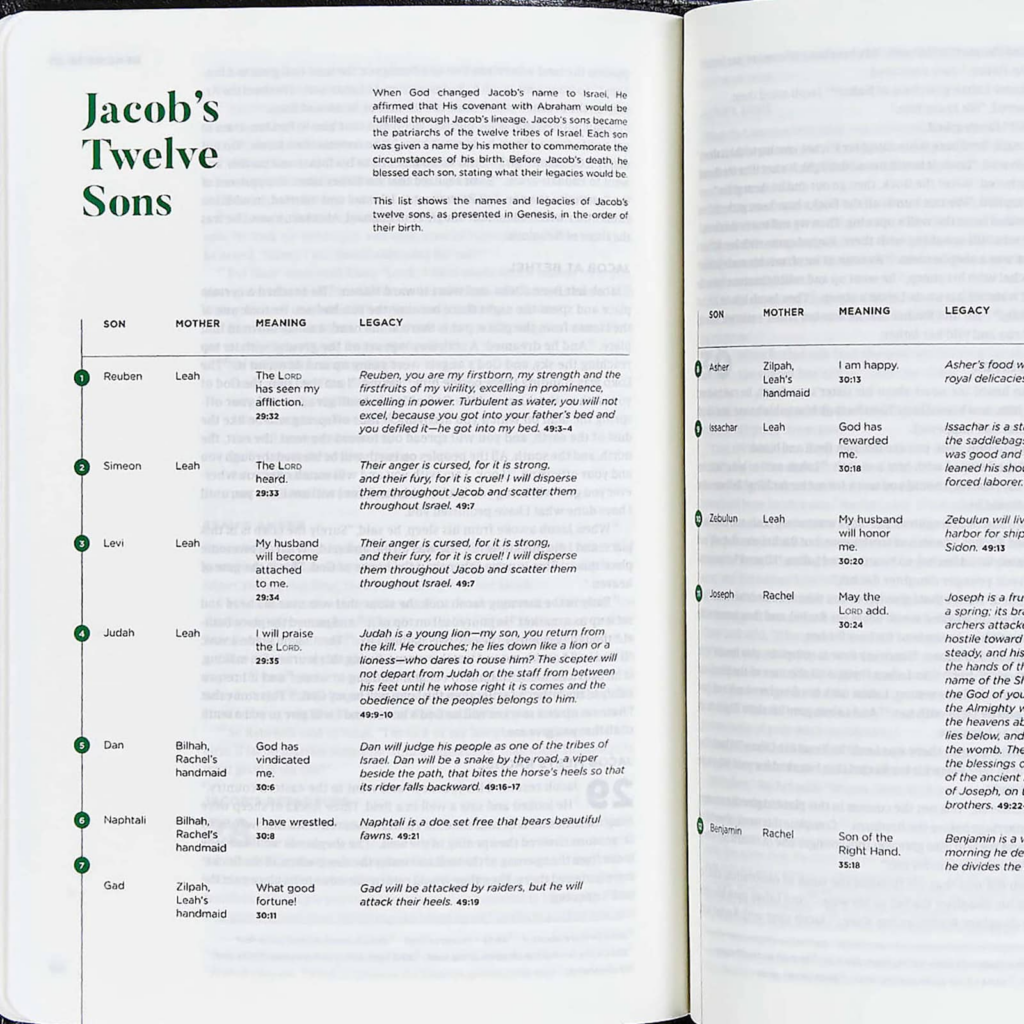 In addition to beautiful Bible text, you’ll discover more than 150 key charts, timelines, maps, and infographics that carefully organize biblical truths to highlight connections often missed while reading. And because Scripture itself is the best interpreter of Scripture, the reading plans for each book include relevant supplemental passages from other parts of God’s Word.