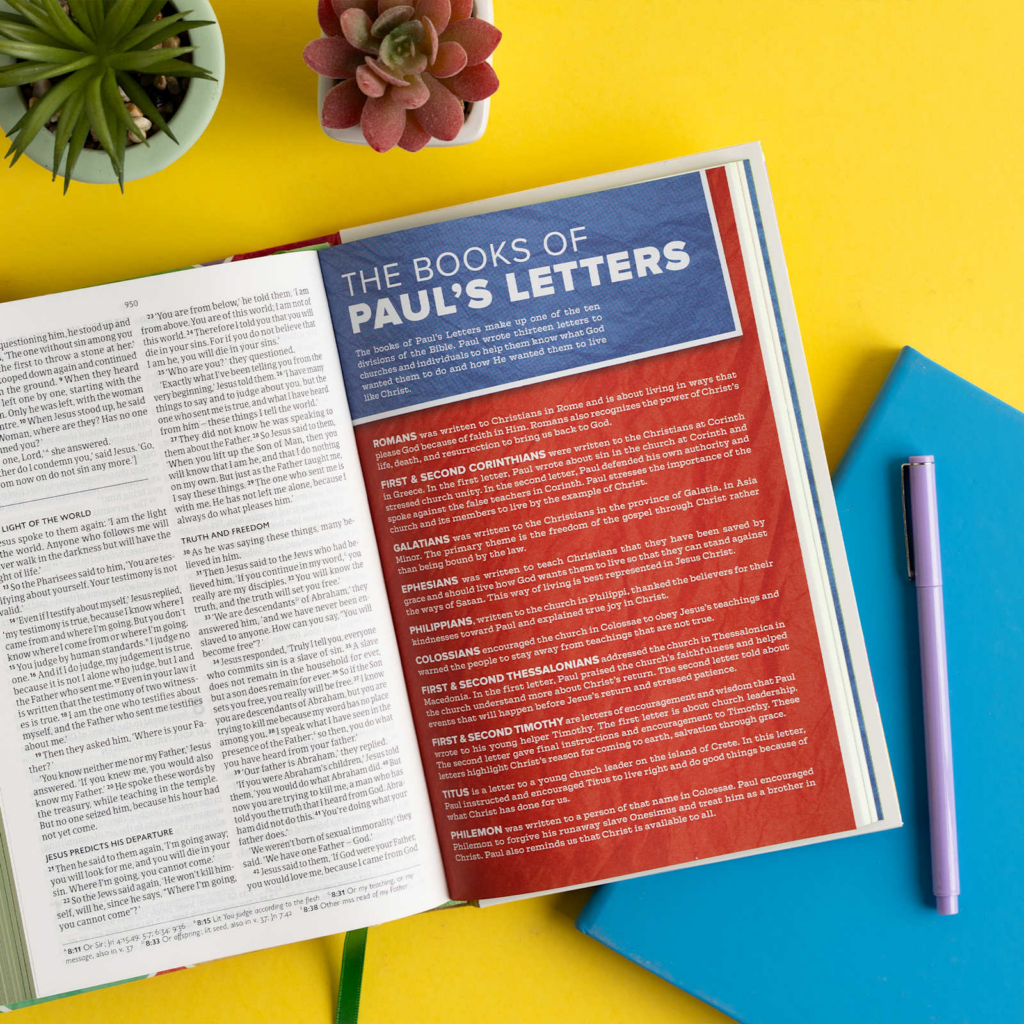 - 40 full-color pages with study helps and maps