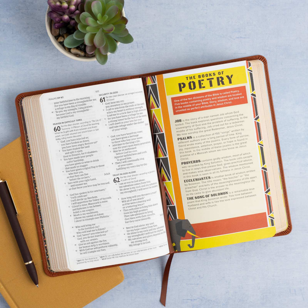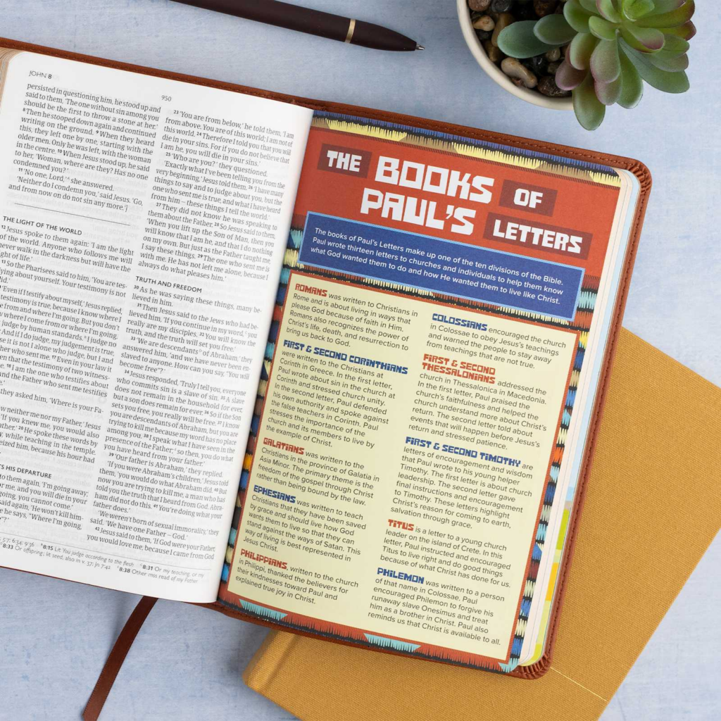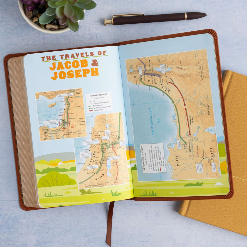 - 40 full-color pages with study helps and maps