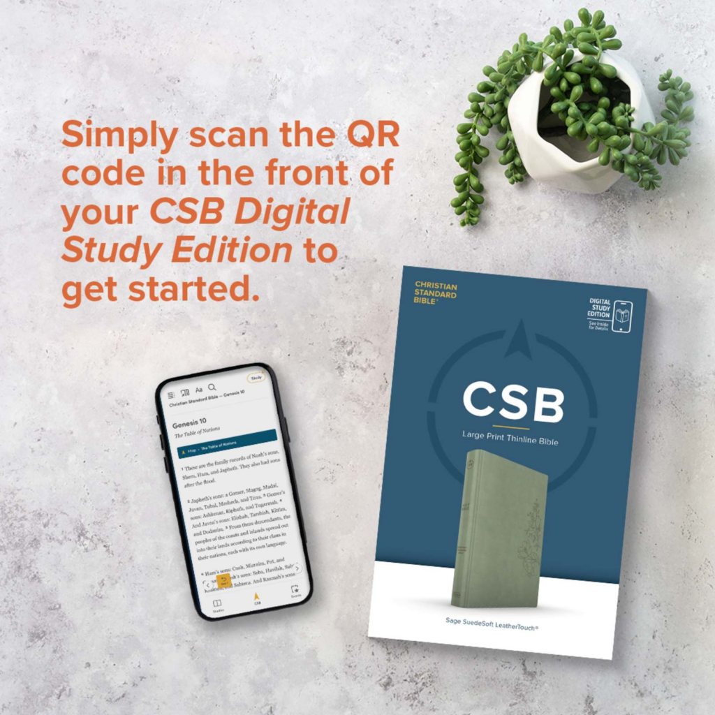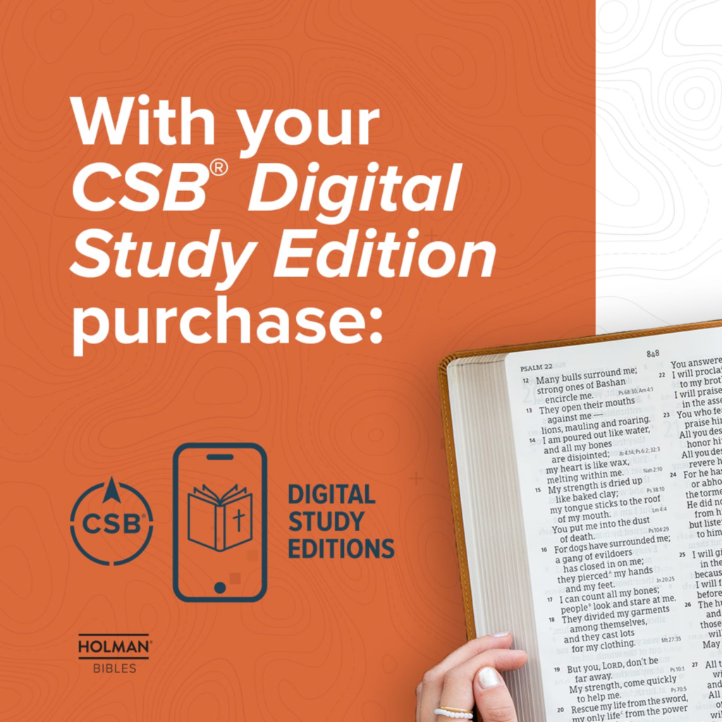 This Digital Study Edition is equipped with exclusive free app access to the digital version of the CSB Study Bible and full text of the Christian Standard Bible® (CSB). Accessible via smartphone or tablet, the ECPA award-winning Holman study system includes extensive study notes, word studies, articles, and other digital study tools that turn this affordable text Bible into a powerful and robust study resource.