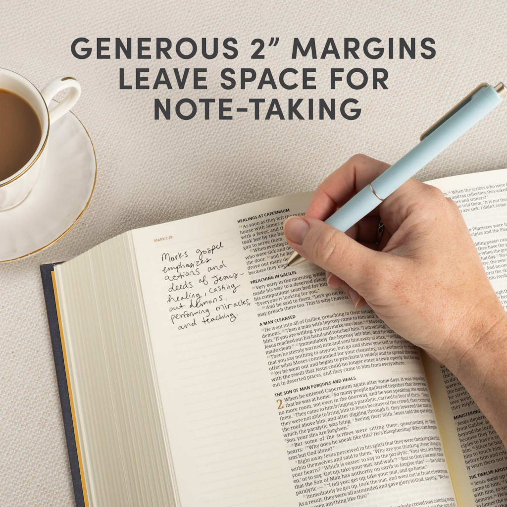Enhance your personal Bible study or prepare for teaching and preaching with the CSB Notetaking Bible. This Bible features a single-column setting with wide journaling margins on each page to make observations, record insights, raise questions, and inspire additional exploration of the text. This beautiful Bible provides the perfect place for insights, over time creating an incredible keepsake of your journey.