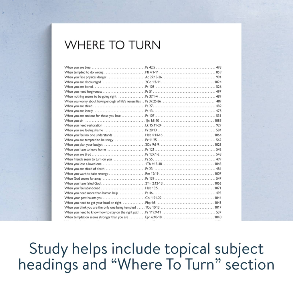 • “Where to Turn” section with Scripture references for common life issues