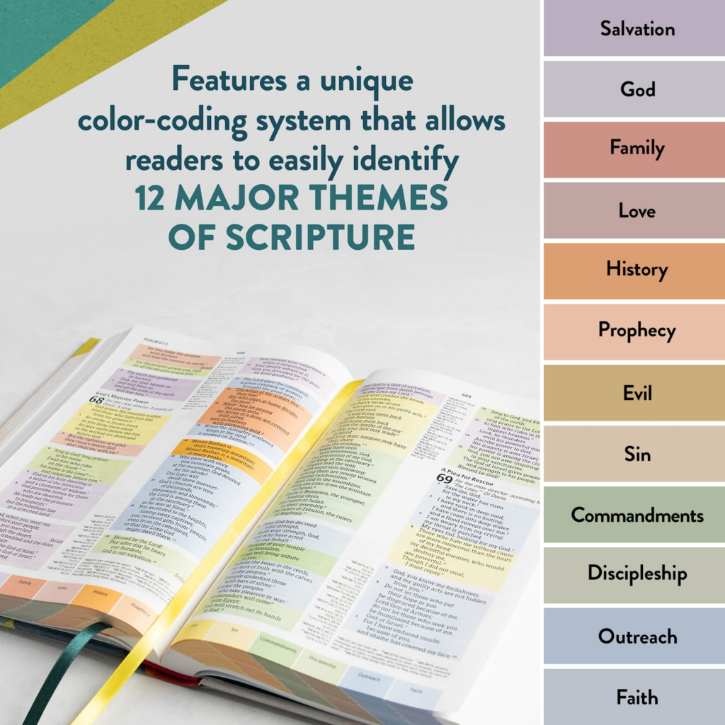 The CSB Rainbow Study Bible features a unique color-coding system that allows readers to quickly and easily identify twelve major themes of Scripture throughout the biblical text: salvation, God, family, love, history, prophecy, evil, sin, commandments, discipleship, outreach, and faith. The Bible study system also underlines all words directly spoken by God the Father, Jesus, and the Holy Spirit. With more than three million Bibles sold, the Rainbow Study Bible is the best-selling fully color-coded study Bible.