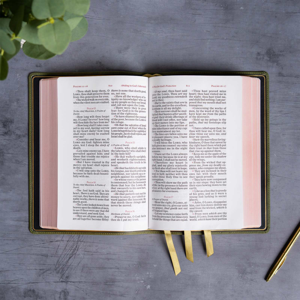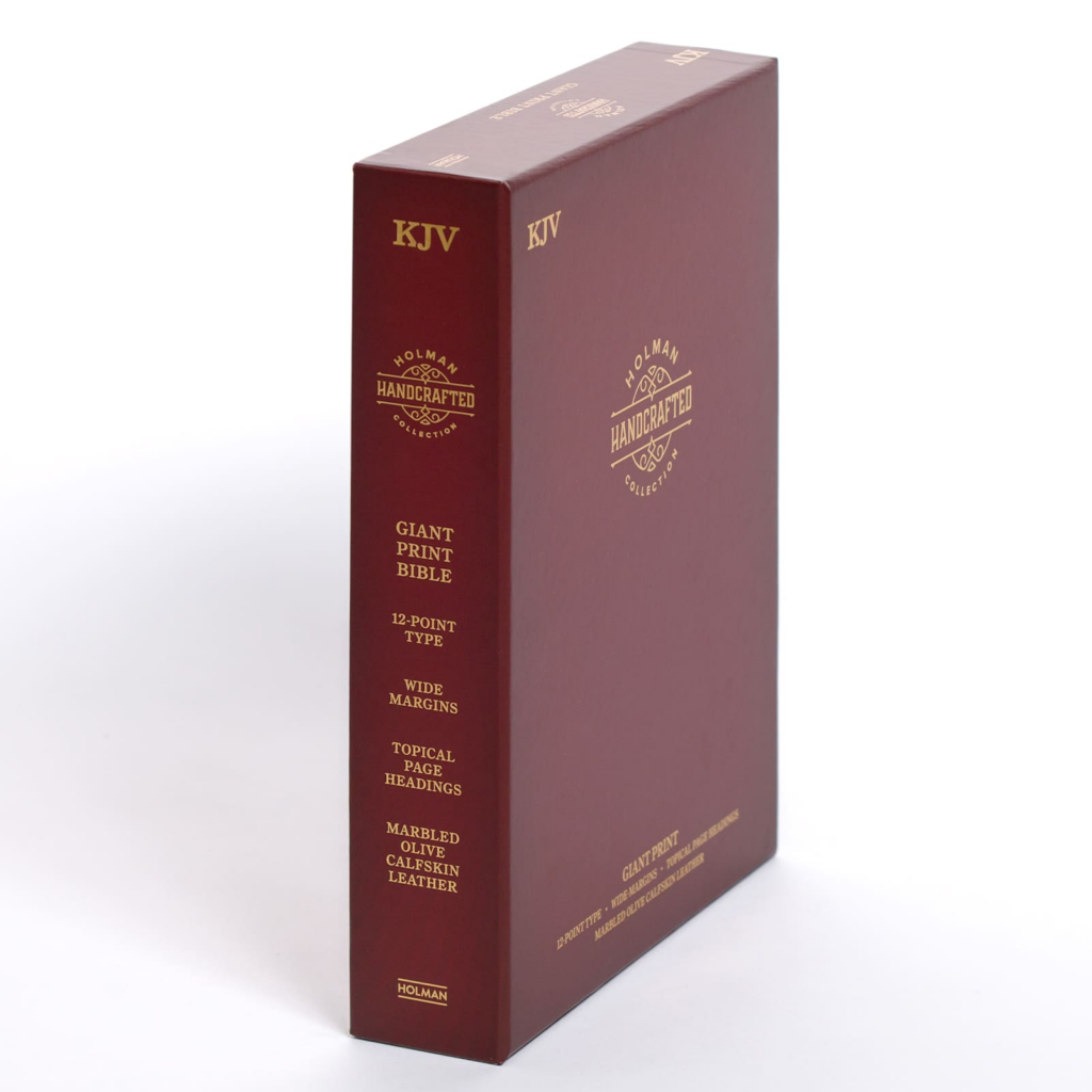 KJV Giant Print Bible, Holman Handcrafted Collection, Marbled Olive Premium Calfskin