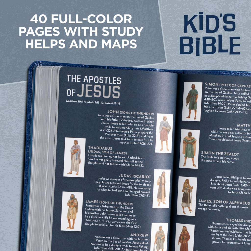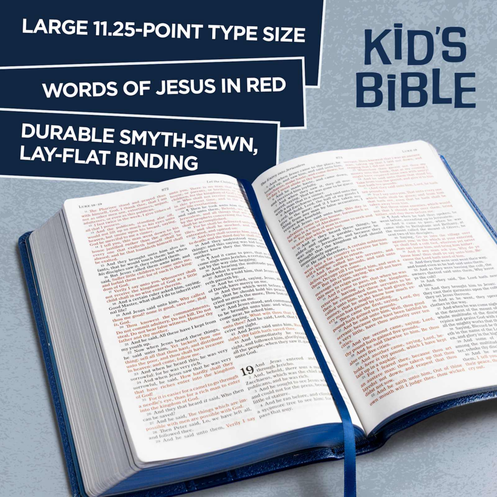 The KJV Kids Bible, Thinline Edition features the authorized Pure Cambridge Edition text of the King James Version (KJV) translation. The KJV is one of the best-selling translations of all time and captures the beauty and majesty of God’s Word for those who love the rich heritage and reverent language of this rendering of the Holy Bible.