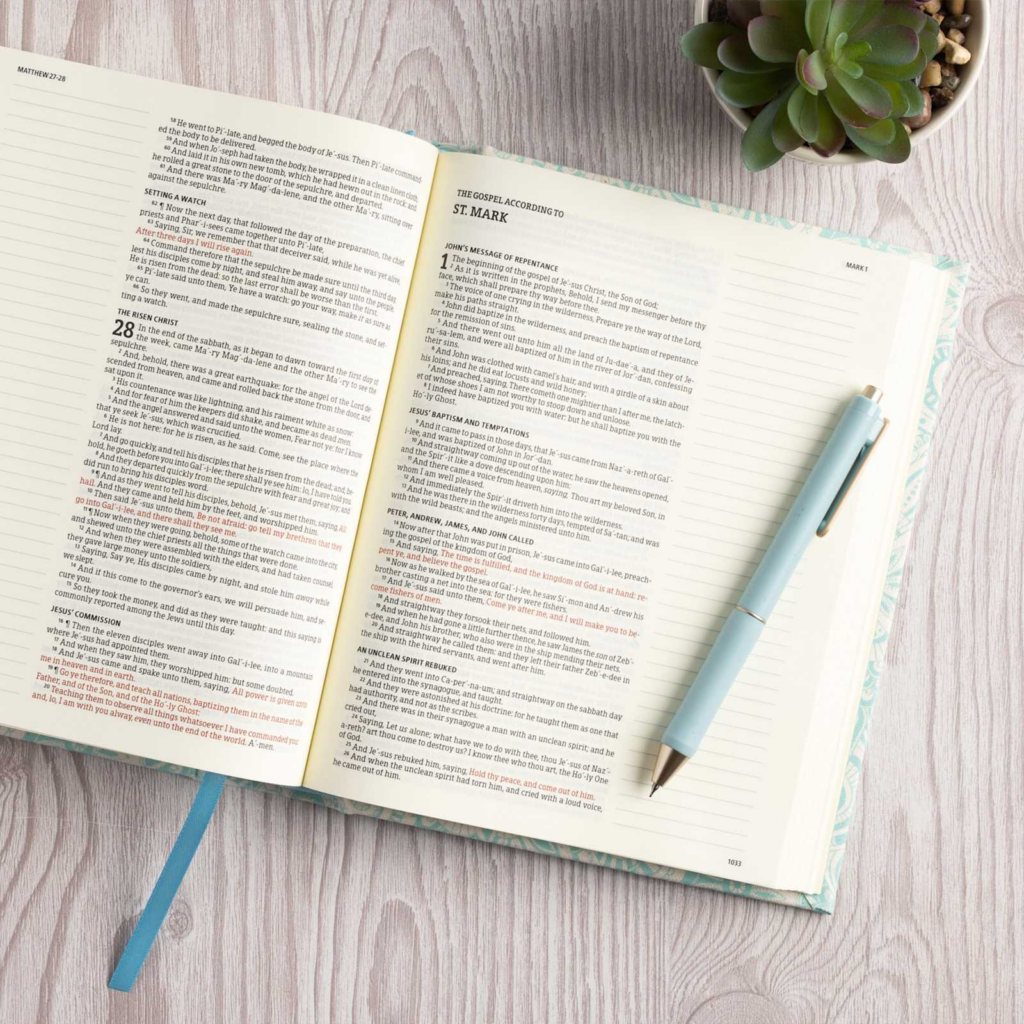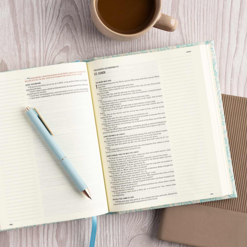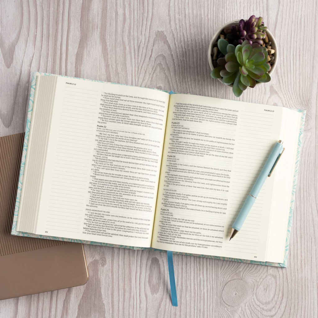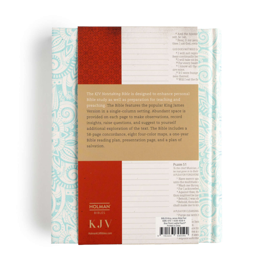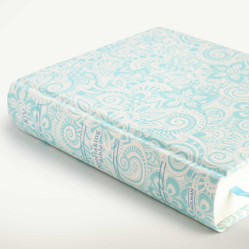 KJV Notetaking Bible, Blue Floral Cloth Over Board