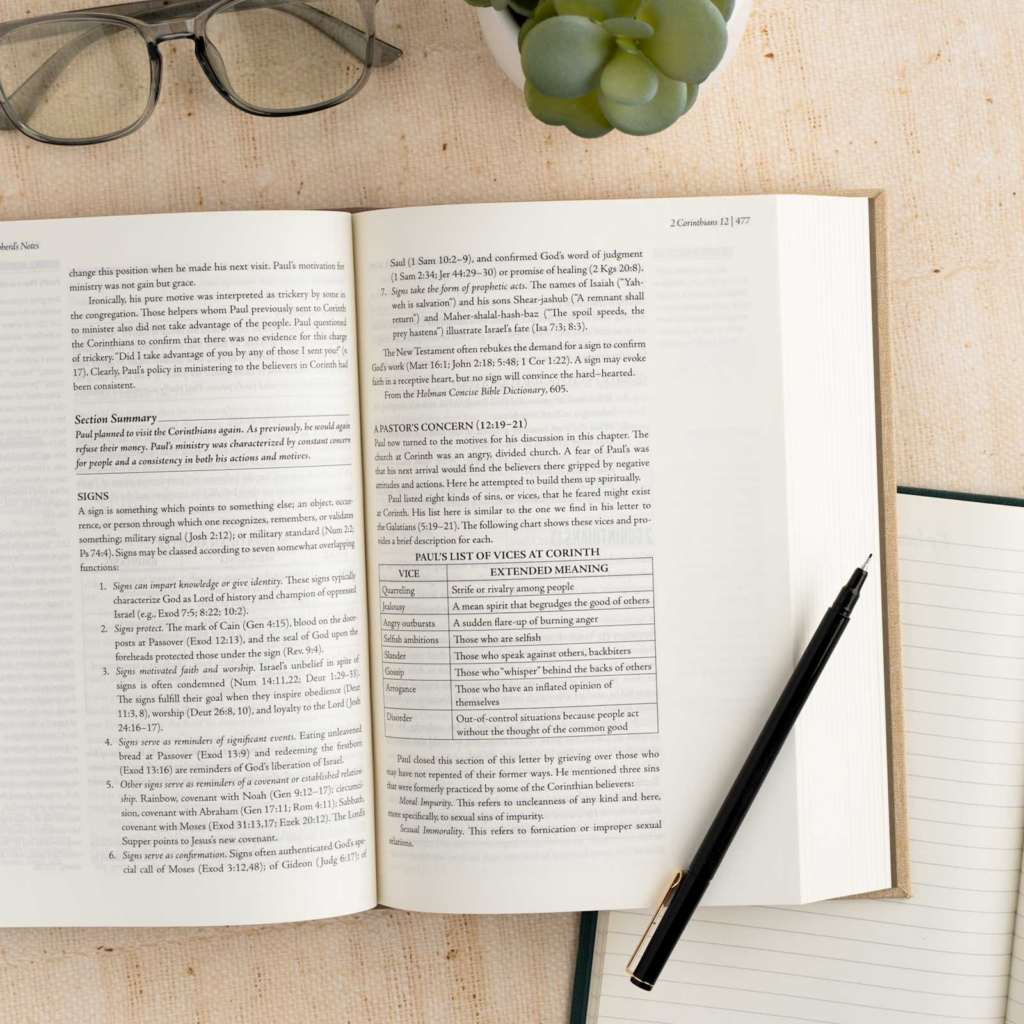 Shepherd’s Notes on the New Testament features the highly readable, highly reliable text of the Christian Standard Bible® (CSB). The CSB captures the Bible’s original meaning without sacrificing clarity, making it easier to engage with Scripture’s life-transforming message and to share it with others.