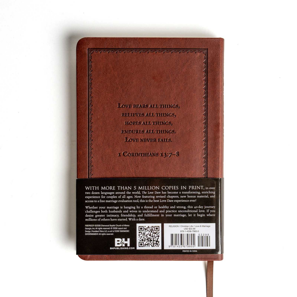 A New York Times No. 1 best seller, The Love Dare is a 40-day guided devotional designed to strengthen every marriage and the same powerful book that plays a pivotal role in the popular movie Fireproof.