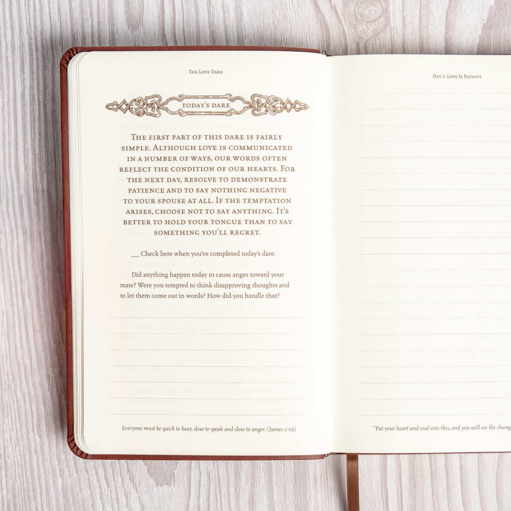 The Love Dare, the New York Times No. 1 best seller that has sold five million copies and was major plot device in the popular movie Fireproof, is a 40-day challenge for husbands and wives to understand and practice unconditional love. Whether your marriage is hanging by a thread or healthy and strong, The Love Dare is a journey you need to take. It’s time to learn the keys to finding true intimacy and developing a dynamic marriage.