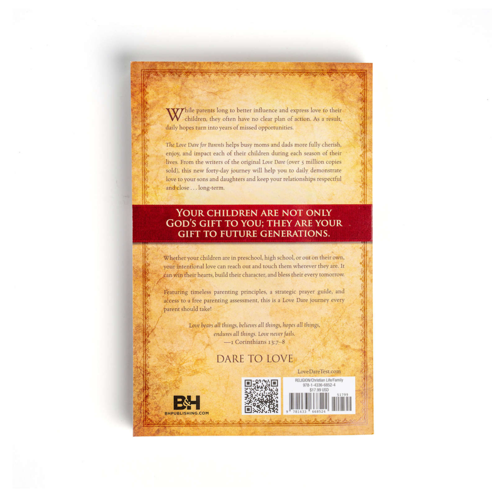 From the authors of international best-selling marriage book The Love Dare comes The Love Dare for Parents, a 40-day journey of “dares” challenging one or both parents to understand, practice, and communicate Christ-like love to their children.