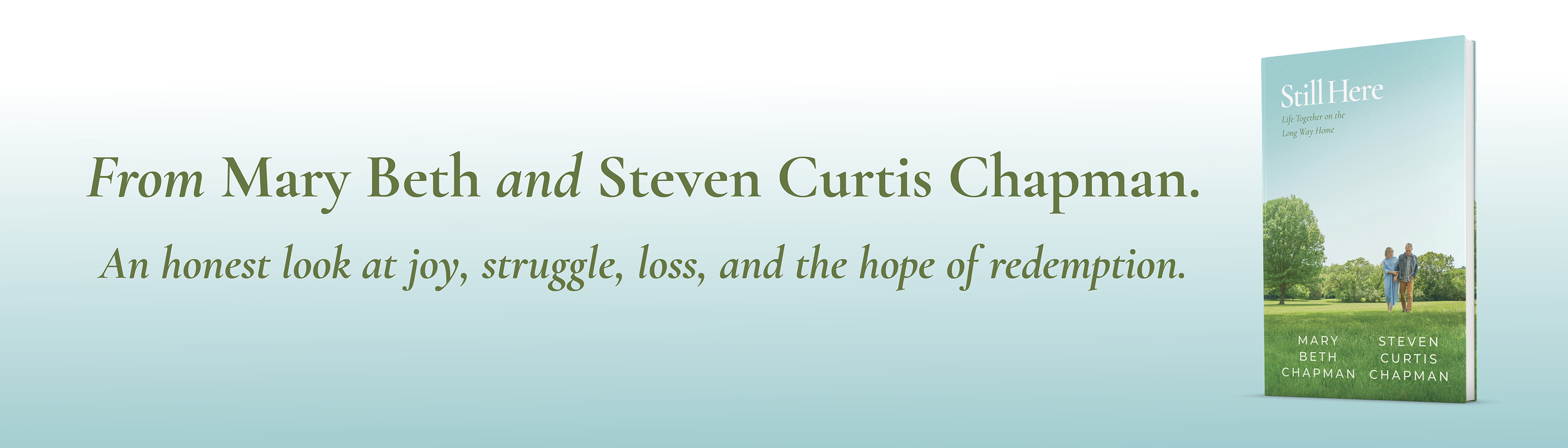 Still Here is their take on marriage, on parenting, on the lives we live and the promises we make. The Chapmans’ story, like all our stories, is one of total dependence on God’s grace and goodness, on His faithfulness and forgiveness, and on His readiness to redeem, in all of us, every outbreak of brokenness.